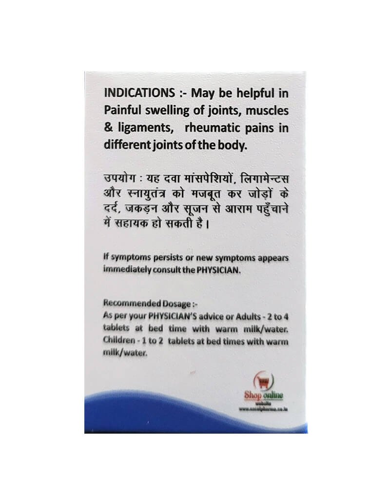 E-Rheum Tablets is a clinically formulated homeopathic preparation which may provide relief from joint pain, stiffness, and muscular discomfort associated with rheumatic conditions. The tablet may help in reducing inflammation, improve mobility, and support overall joint health.